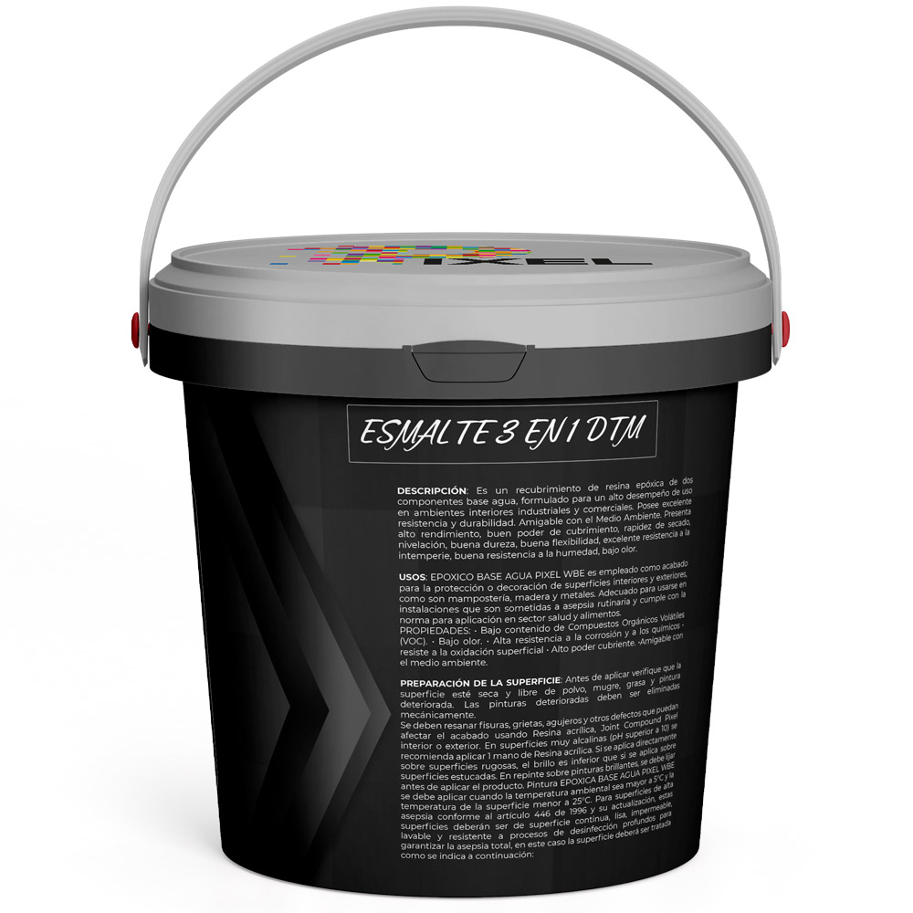 DESCRIPCIÓN: ESMALTE 3 EN 1 PIXEL está elaborado con resinas alquídicas de alta calidad, contiene anticorrosivos de última tecnología, que permiten proteger el metal de la oxidación y a la vez ofrecer un acabado brillante. Diseñado para aplicar directo al metal con una excelente adherencia, durabilidad y resistencia a la corrosión.