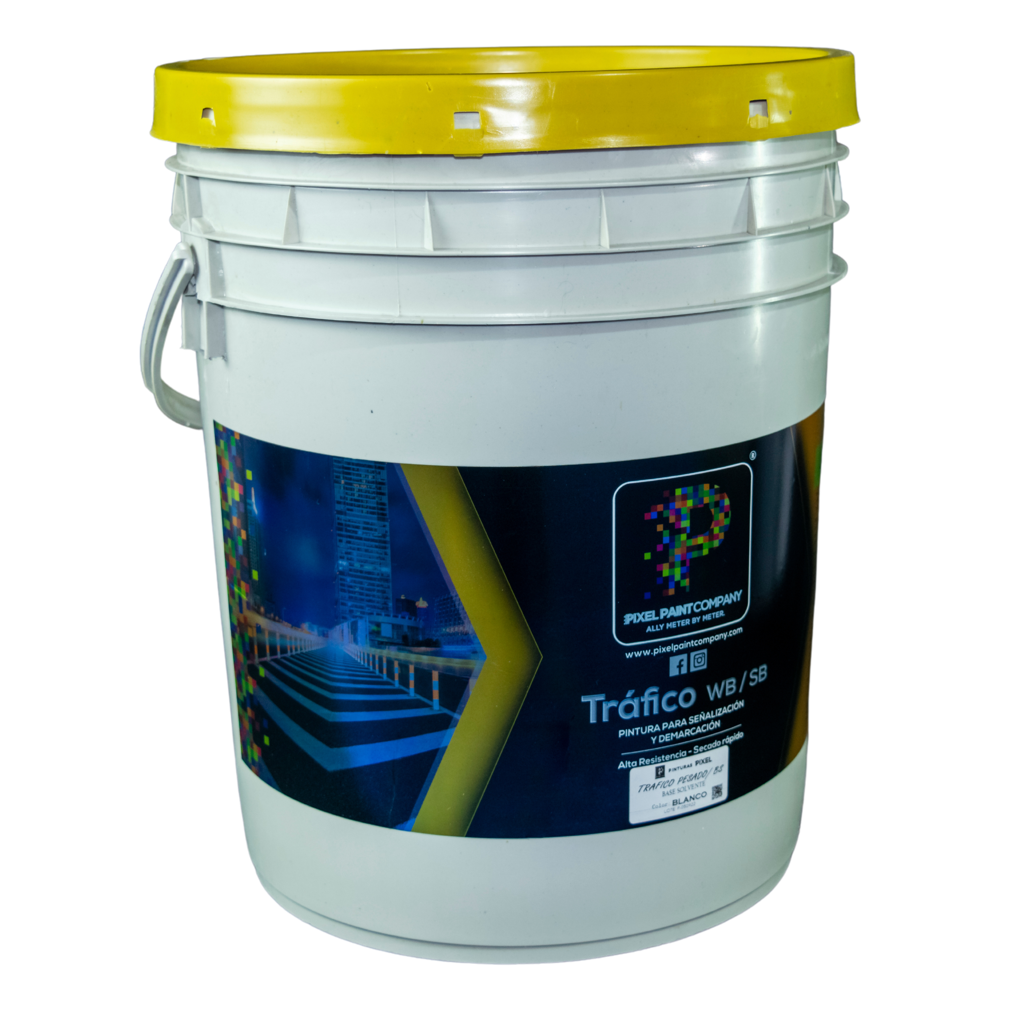 RECOMENDACIONES: La pintura TRAFICO BASE SOLVENTE PIXEL SB, por ser fabricado a base de solvente  presenta riesgo de explosión o incendio. • Este producto es diseñado para pisos y zonas de demarcacion. • Nivel de toxicidad por inhalación de vapores es alto, se recomienda aplicar en un lugar con buena ventilación, utilizando careta, guantes y gafas de seguridad. • En caso de contacto con la piel lavar con abundante agua y jabón. Si el contacto es con los ojos, lavar con abundante agua y buscar asesoría médica, y en caso de Ingestión, beber abundante agua y buscar asesoría médica. • Tapar el empaque mientras el producto no se encuentre en uso. • Mantenga fuera del alcance de los niños.